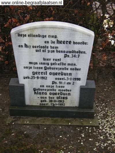 Grafsteen van Gerrit Overduin en Klara Overduin - van der Vlies